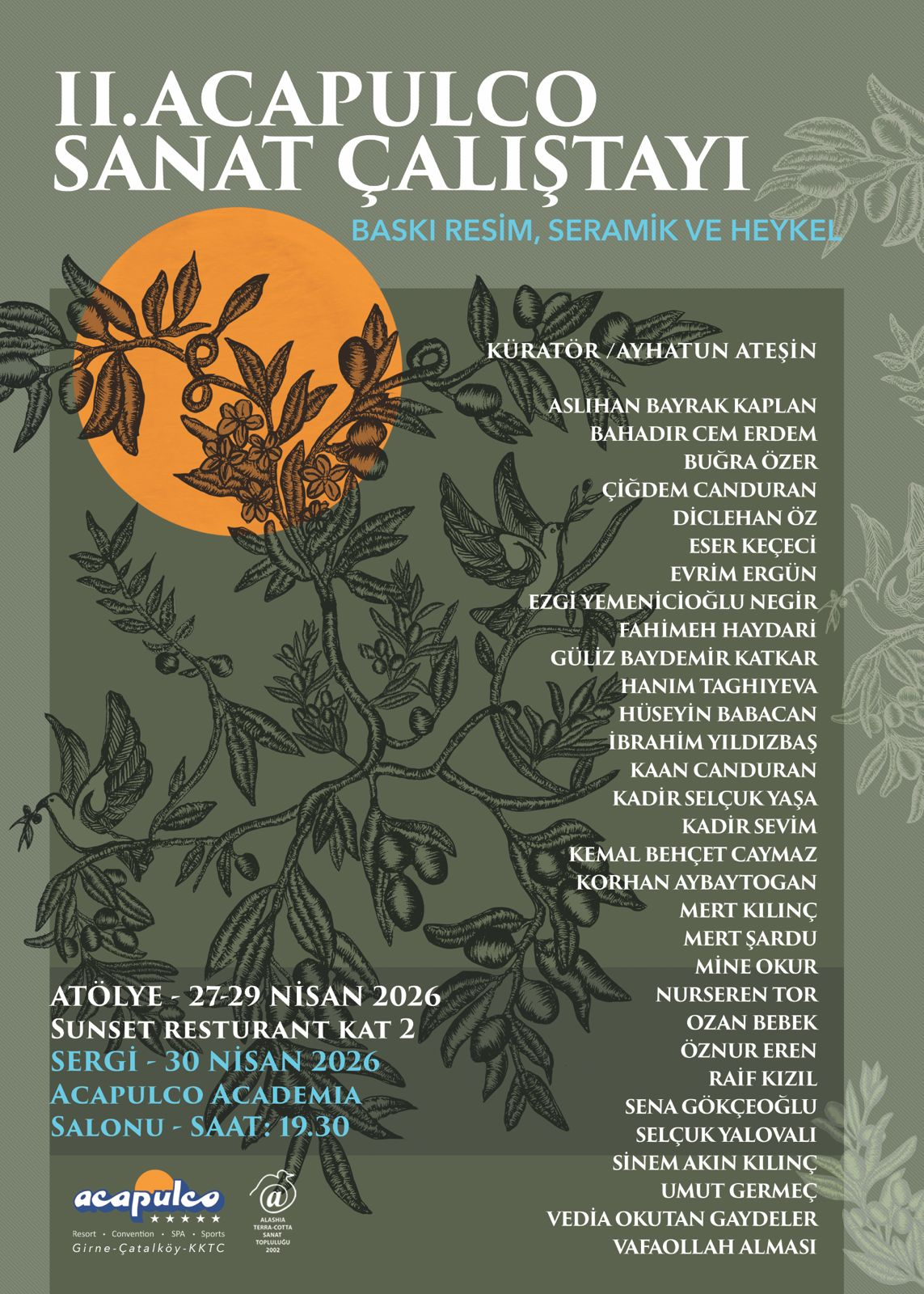 Acapulco Sanat Çalıştayı, Ayhatun Ateşin küratörlüğünde, Alashia Terracotta Sanat Topluluğu iş birliğiyle bu yıl “Akdeniz’in Sessiz Tanığı; Zeytin” temasıyla başlıyor.
