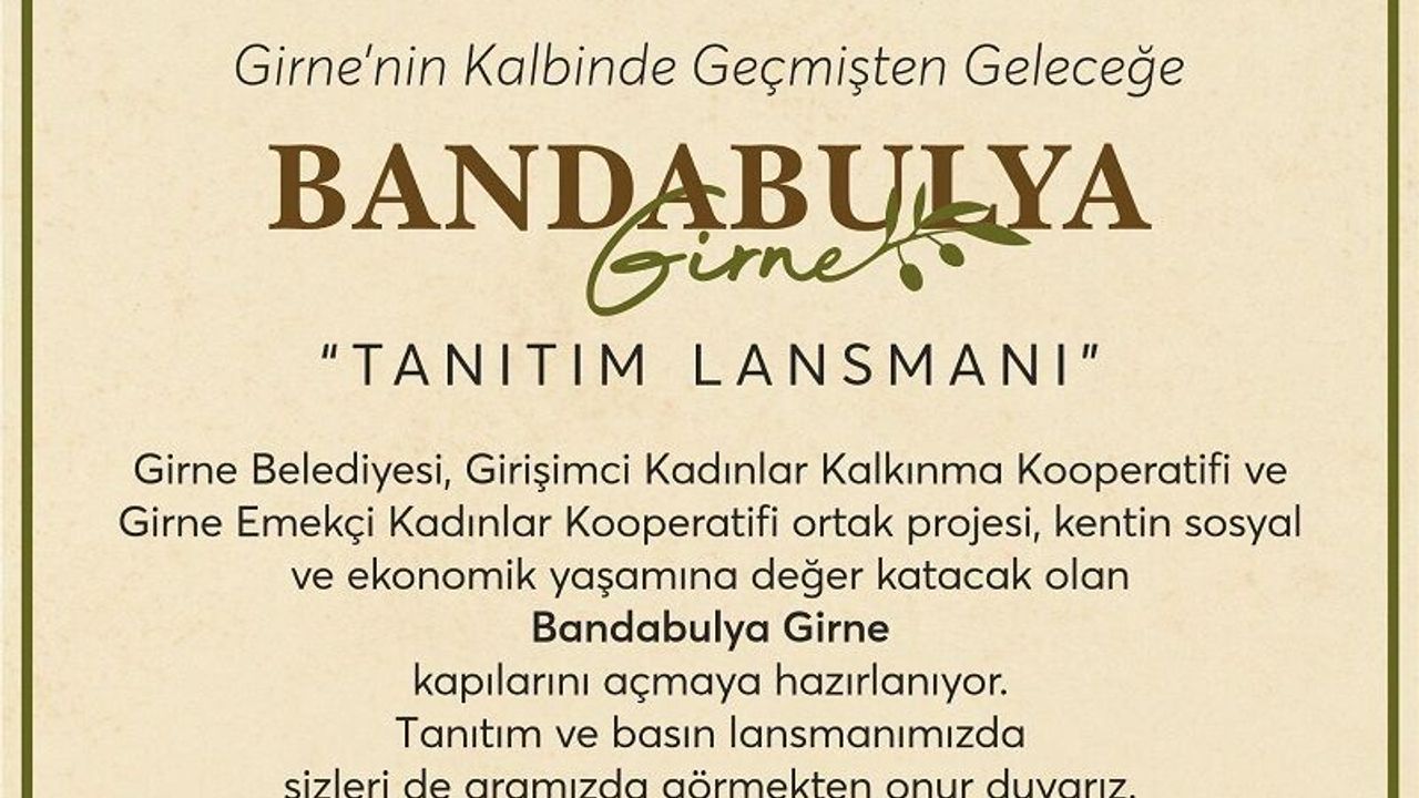 Açıklamada, “Kentin tarihsel hafızasında önemli bir yere sahip olan Bandabulya, bu projeyle yalnızca fiziksel bir mekân olarak değil, üretimin, dayanışmanın ve kadın emeğinin görünür kılındığı yaşayan bir sosyal ve ekonomik merkez olarak yeniden hayat buluyor. Bandabulya Girne, yerel üretimi destekleyen, kadın girişimciliğini güçlendiren ve kentin kültürel dokusunu koruyarak geleceğe taşıyan sürdürülebilir bir model ortaya koymayı hedeflemektedir. Proje, Girne’nin sosyal ve ekonomik yaşamına değer katarken, yerel kalkınmada kadın kooperatiflerinin rolünü de güçlendirecektir” denildi.