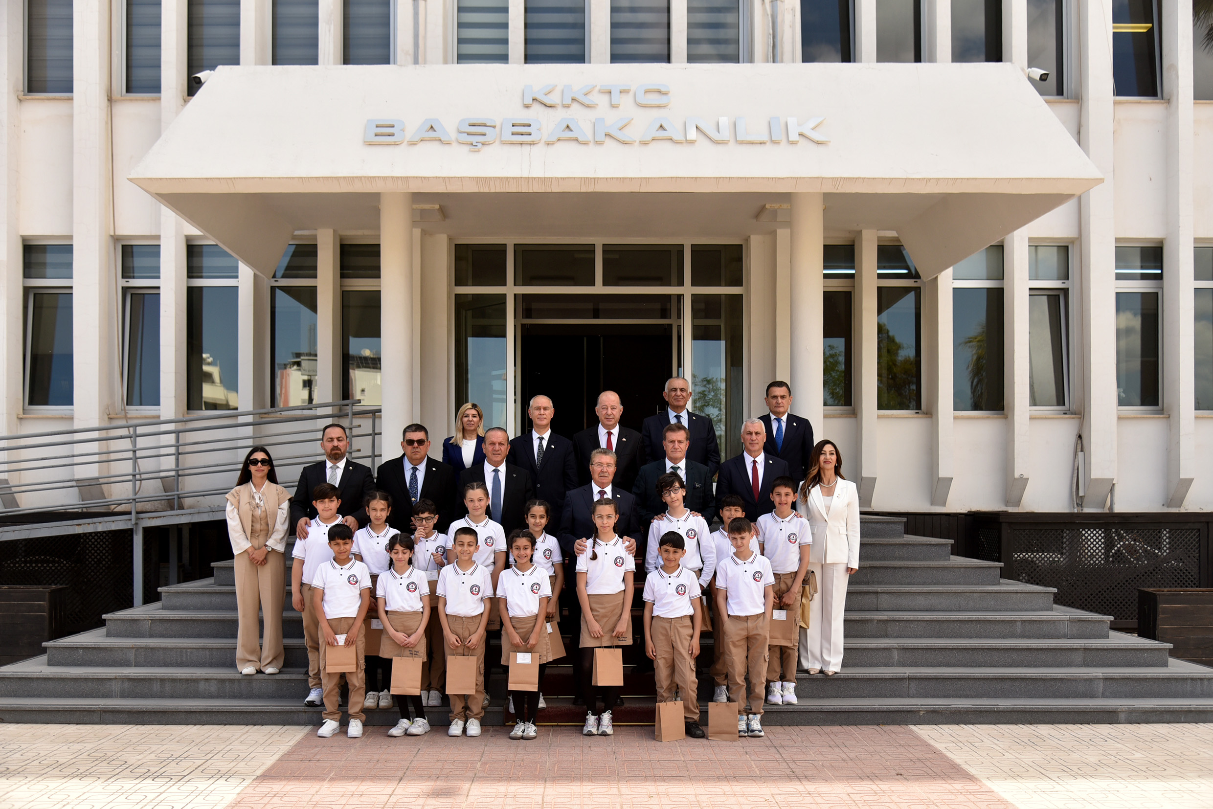 23 Nisan Ulusal Egemenlik ve Çocuk Bayramı dolayısıyla ilkokul öğrencilerini kabul eden Başbakan Ünal Üstel, “Ülkemizin geleceğini şekillendirecek çocuklarımızı burada ağırlamaktan büyük mutluluk duyuyoruz.” dedi.