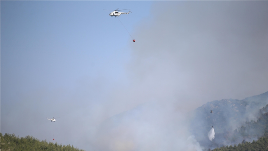 Yangın söndürme çalışmalarına havadan 10 helikopter, 8 uçak, karadan 33 arazöz, 16 su tankeri, 5 dozer, 271 personel ile bazı sivil toplum kuruluşları ve çok sayıda itfaiye ekibi destek veriyor.