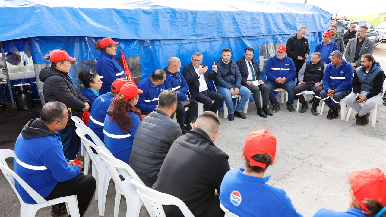 Erhürman, grevdeki Ektam Kıbrıs Ltd. çalışanlarını ziyaret etti