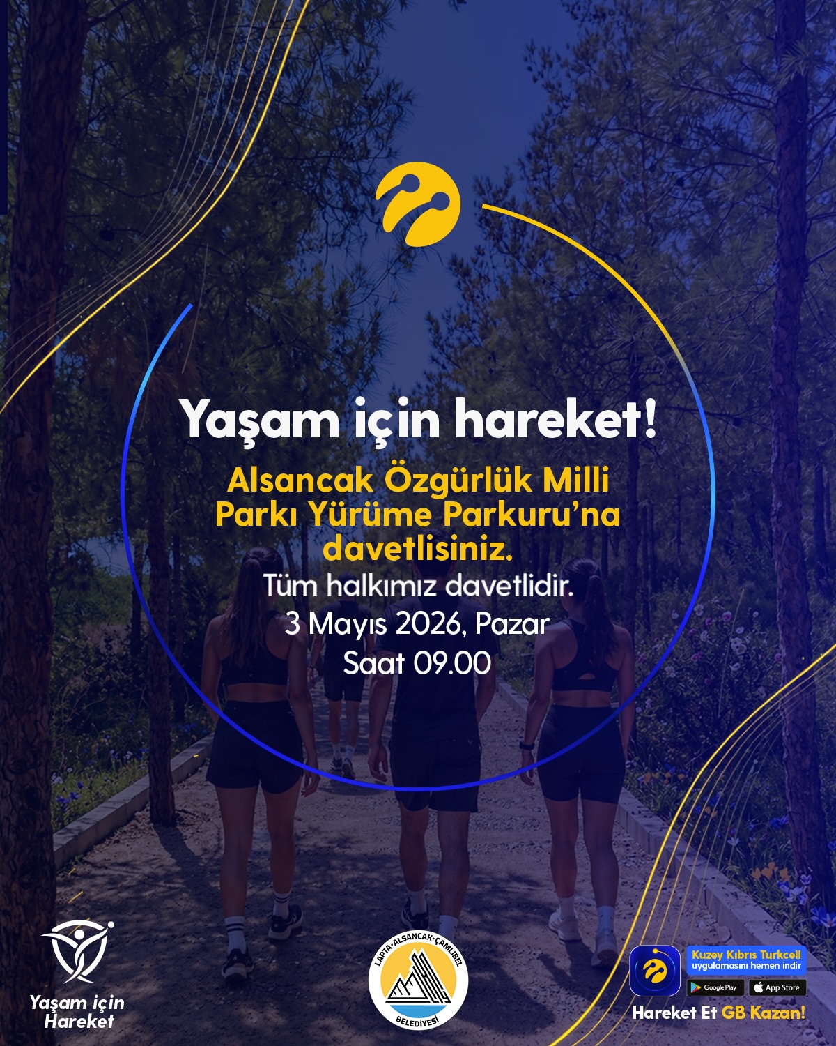 Kuzey Kıbrıs Turkcell, “Yaşam için Hareket” etkinliğiyle 3 Mayıs Pazar günü Alsancak Özgürlük Milli Parkı’nda halkla buluşacak.